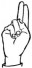 На ћирилици написано НИКОДИЈЕ МАЛИЧАНАЦ састоји се из 17 слова [?]. Исписано ћириличном једноручном азбуком за глувонеме: